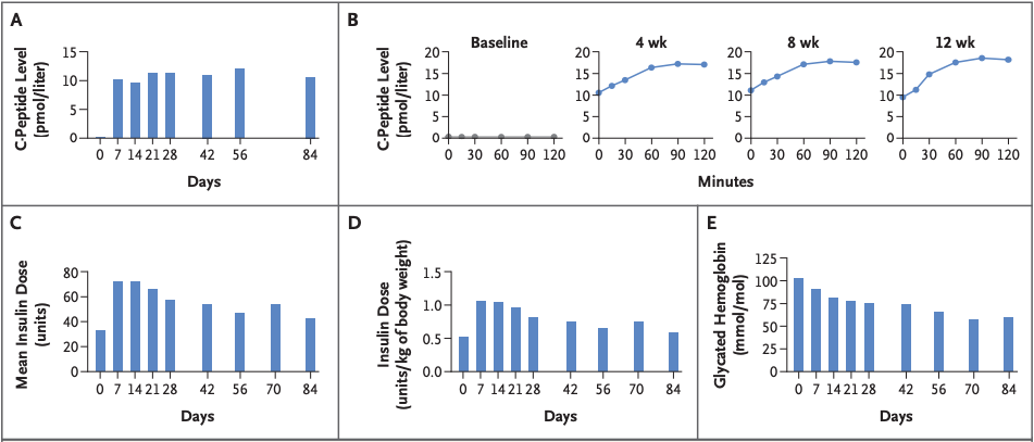 This related trial shows another potential cure for T1D with an autologous approach. This strategy may have some tradeoffs though; it requires differentiation of beta cells from patient cells and still may ultimately be destroyed by the immune system without immunosuppressant drugs. Only time will tell what is the best path forward.